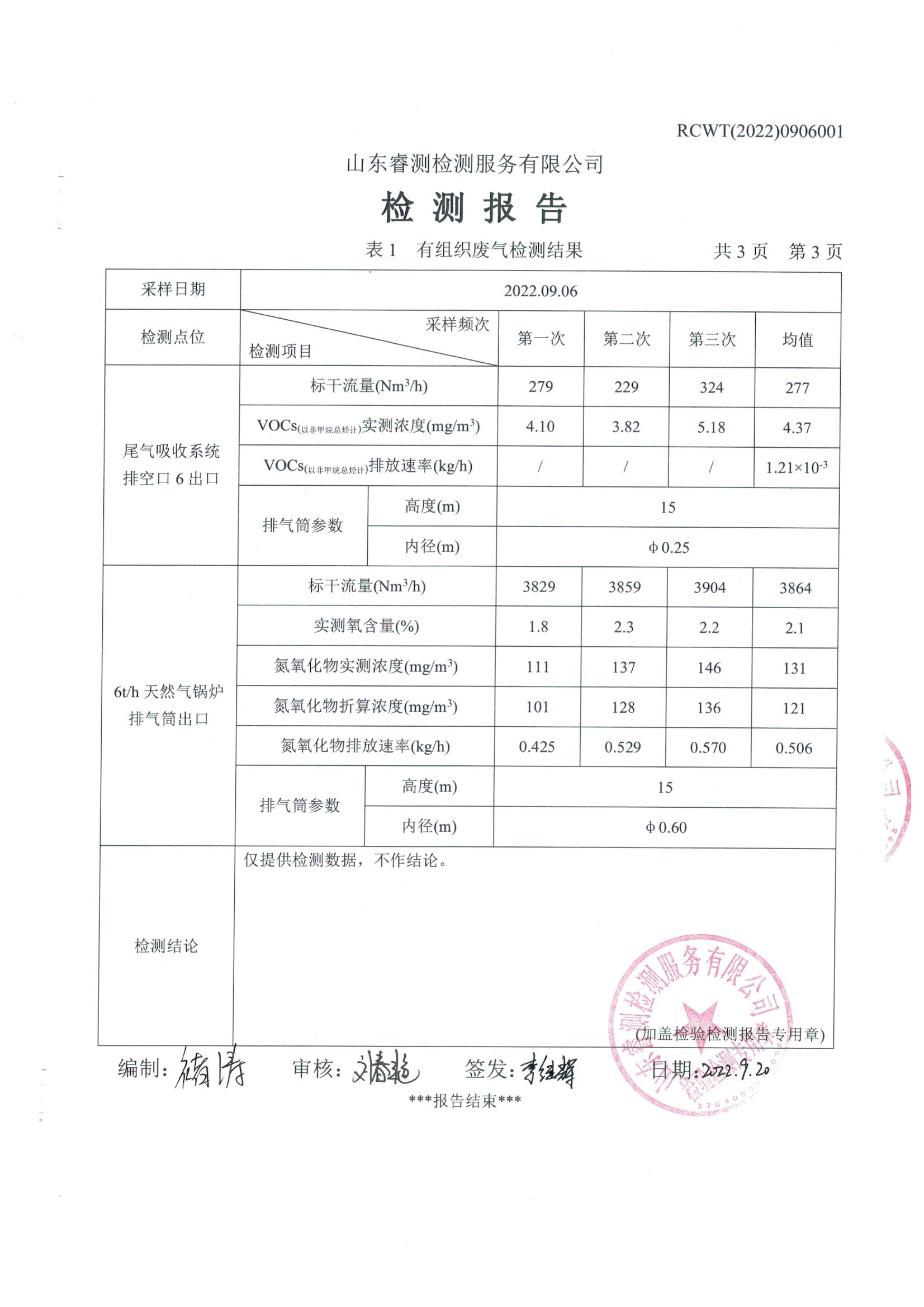 2022年9月份環(huán)保檢測(cè)報(bào)告