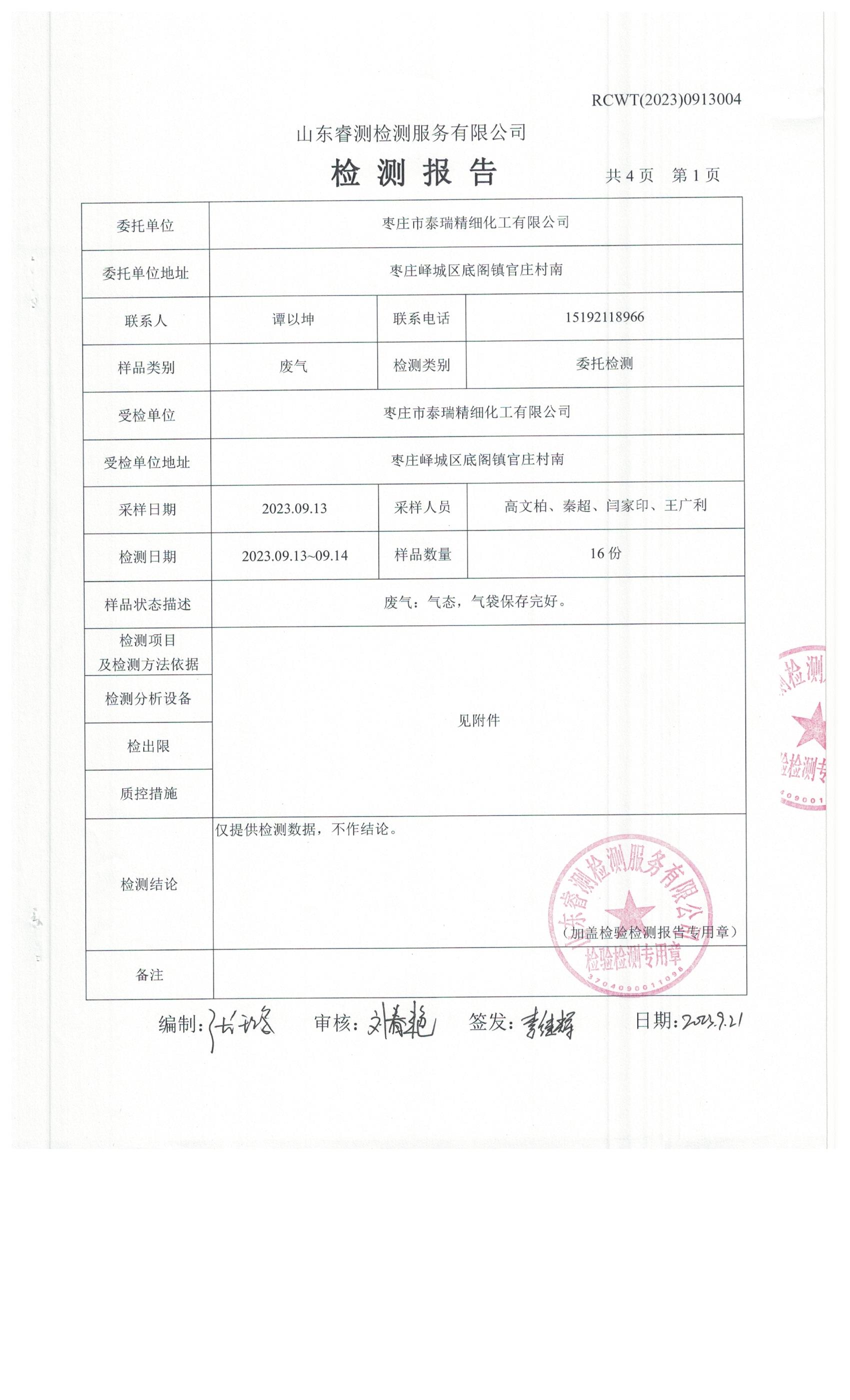2023年第3季度(9月份)檢測(cè)報(bào)告