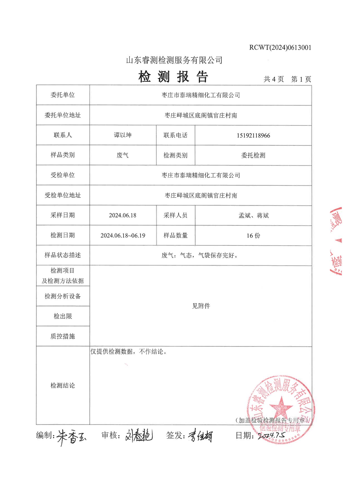 2024.6環(huán)境檢測報告泰瑞化工報告